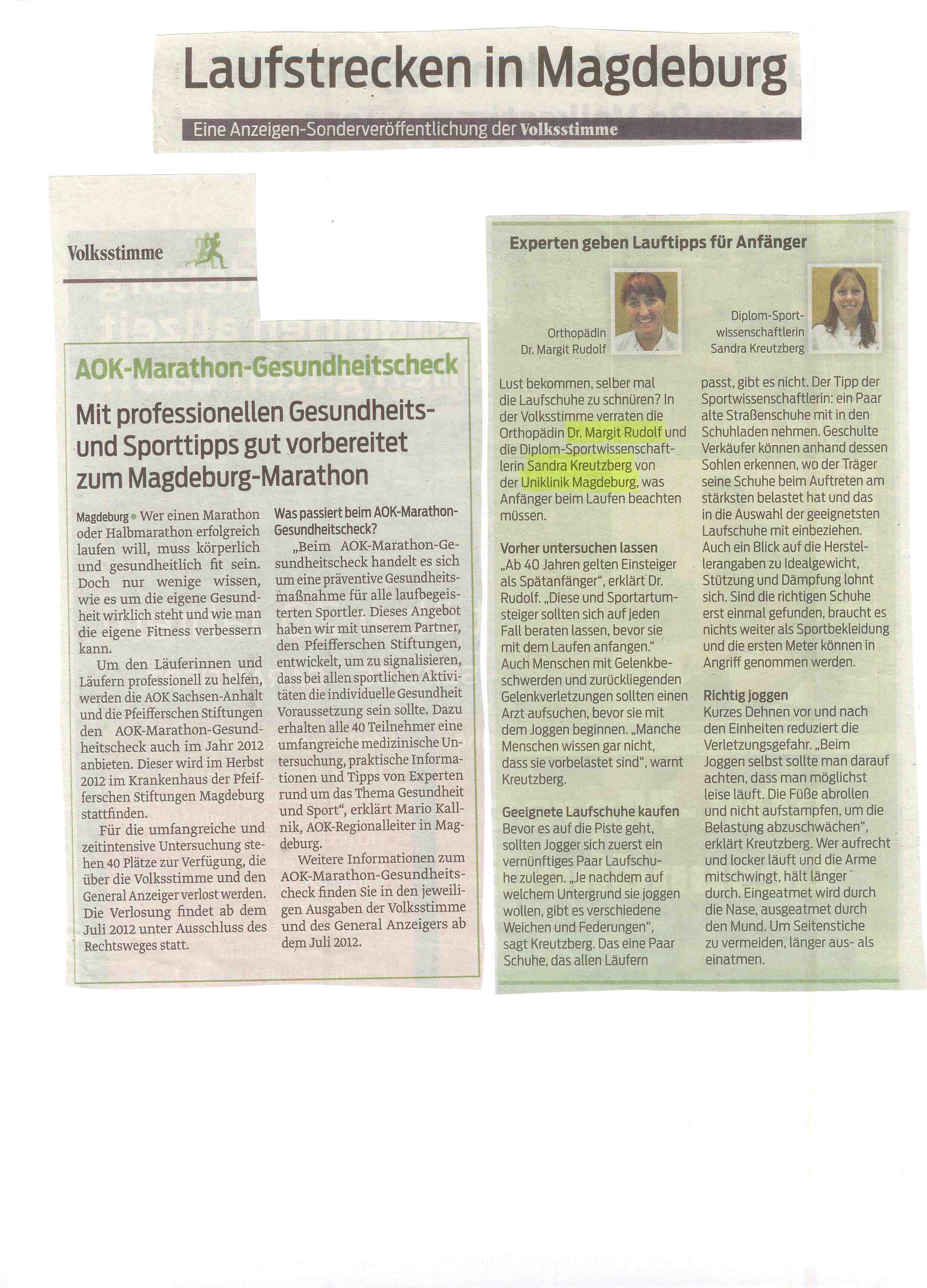 25.07.2012 "Schmerzen in Knie und Gelenken" Magdeburger Volksstimme