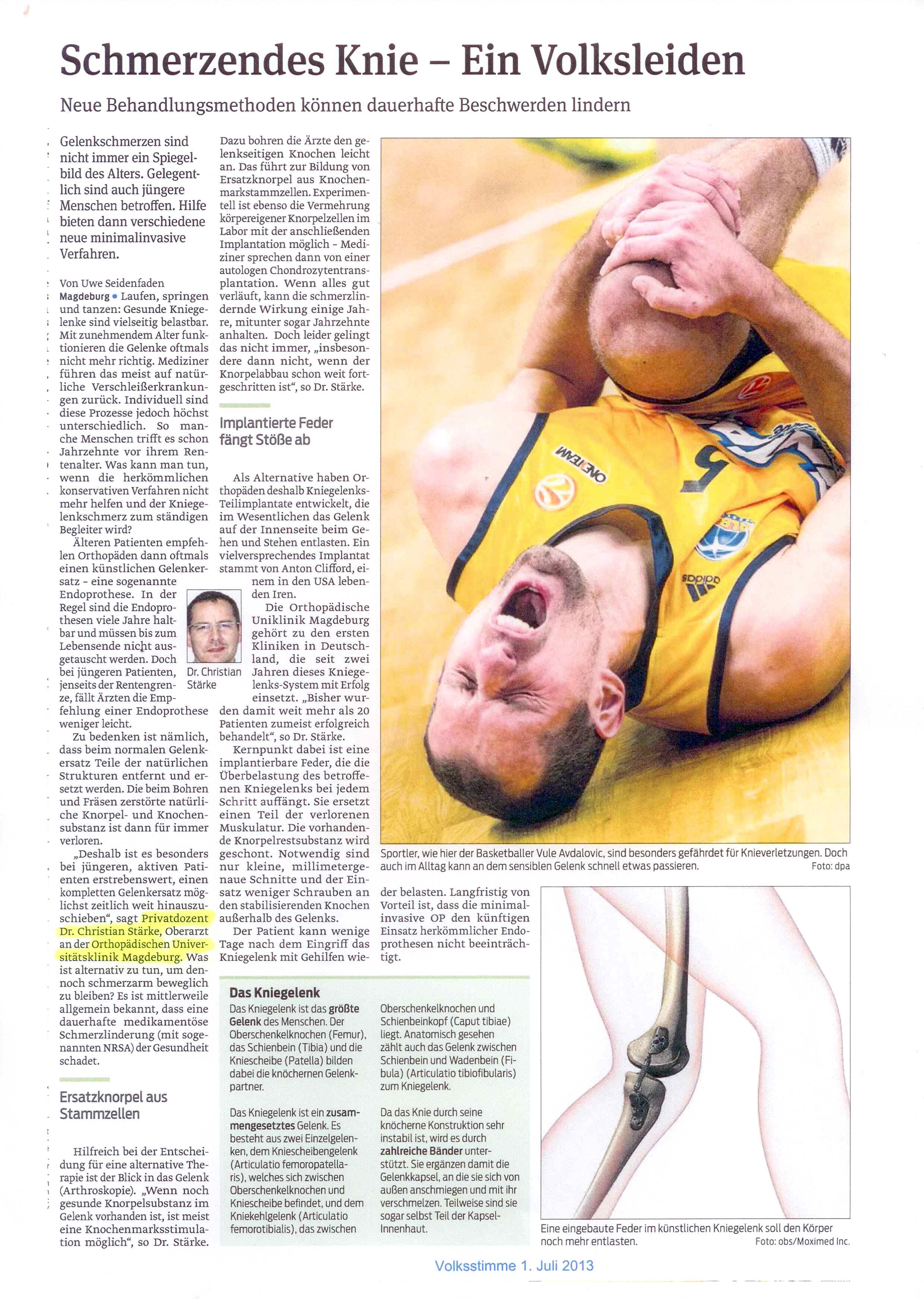 01.07.2013 "Schmerzendes Knie - ein Volksleiden" Magdeburger Volksstimme
