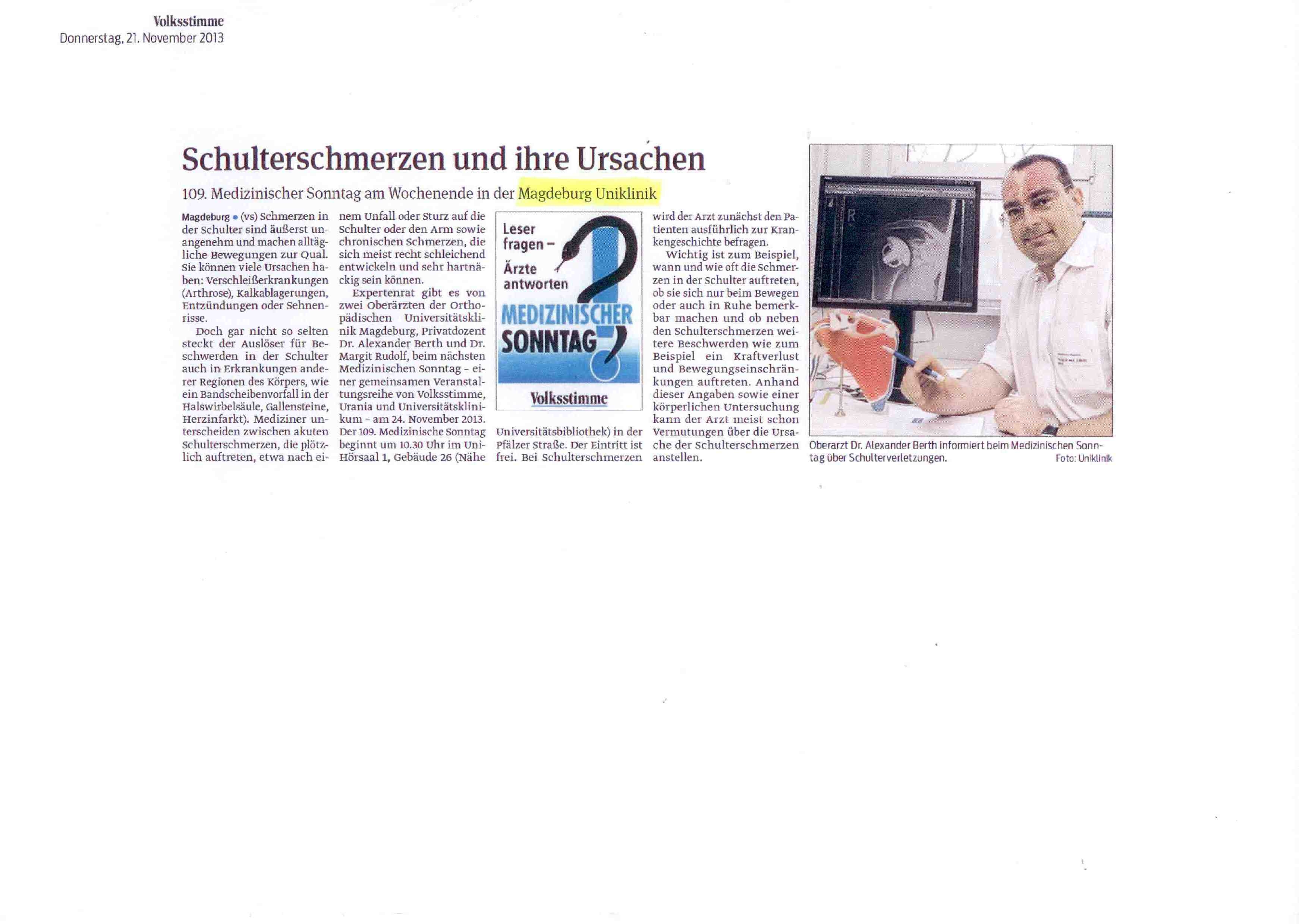 21.11.2013 "Schulterschmerzen und ihre Ursachen" Magdeburger Volksstimme
